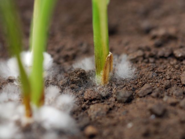 De valse meeldauw heeft een witgrauw laag schimmelpluis aan de onderzijde van het blad. Aan de bovenkant onstaan vaak geelgroene vlekken. Aangetaste delen van de planten moeten worden verwijderd.