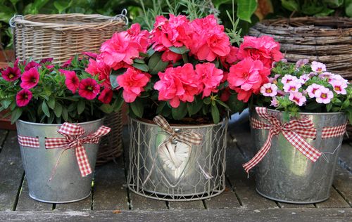 Planten in potten en bakken hebben een betere verzorging nodig dan planten in de grond. De keuze in potten en manden is groot. Geglazuurde potten hebben het voordeel dat het water in de pot minder verdampt dan in de roodstenen (terracotta) potten. In de terracotta potten zit veel kwaliteitsverschil, de goedkopere soorten zijn vaak poreuzer dan de duurdere goed doorgebakken. In de winter kan het dus voorkomen dat de goedkopere potten stuk vriezen.