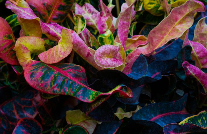 - Croton, ook wel wonderstruik genoemd. Deze kamerplant is een echte blikvanger die meer dan twee meter hoog kan worden. Het bonte blad is er in vrijwel alle kleuren van de regenboog: geel, rood, oranje en zelfs paars. De plant kan goed tegen direct zonlicht, dus kan prima op een plekje dichtbij een raam. Zorg ervoor dat de grond licht vochtig blijft.
